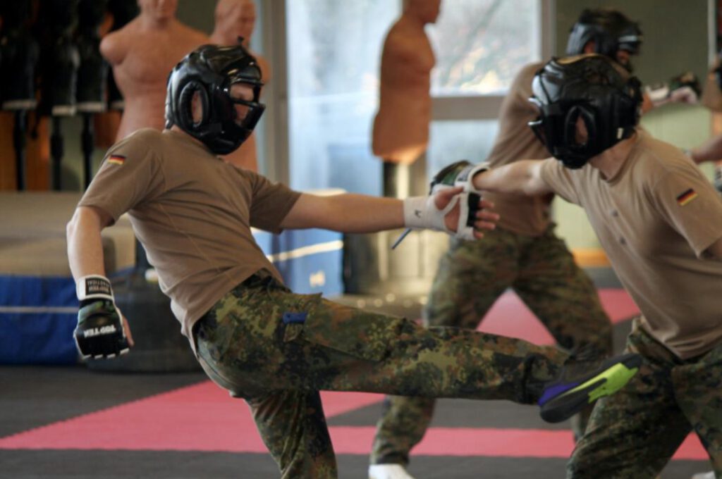 Belastung mit dem Anspruch, nicht vor Übungsende aufzugeben. Für die Inübunghaltung, sowie für eine weitere Steigerung bis zum Grad Beherrschen, werden für die Einheiten bzw. Standorte Ausbilder gesucht, welche dann ebenfalls den Grundlehrgang aber auch regelmäßige Wiederholungsausbildungen anbieten können. Für diese Zwecke sind die Standorte sogar mit der nötigen Ausstattung an Schutzausrüstung, Waffenattrappen/Blue-Guns, Sandsäcken und Dummies etc. ausgestattet worden. In Veitshöchheim hält diese Ausstattung das FmBtl 10 vor – Ausbilder für das SichBtl 10 werden gerade in den eigenen Reihen gesucht.